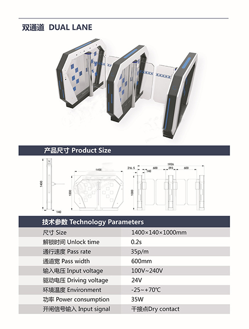 速通門346系統(tǒng)具備角度分辨和零位自檢功能,包含 500P/R 編碼器,分辨精度高,這種高精度的傳感器的優(yōu)勢是使擺桿轉(zhuǎn)動(dòng)_; 3.非法進(jìn)入有報(bào)警提示功能; 4.防沖功能,在沒有接收功能開閘信號,擺臂自動(dòng)鎖死; 5.紅外防夾功能,在擺臂復(fù)位的過程中紅外檢測到人在通道中,擺臂會自動(dòng)回到打開狀態(tài); 6. 統(tǒng)一標(biāo)準(zhǔn)的對外電氣接口,可與多種讀卡器相掛接,并可通過管理計(jì)算機(jī)實(shí)現(xiàn)遠(yuǎn)程控制與管理; 7.